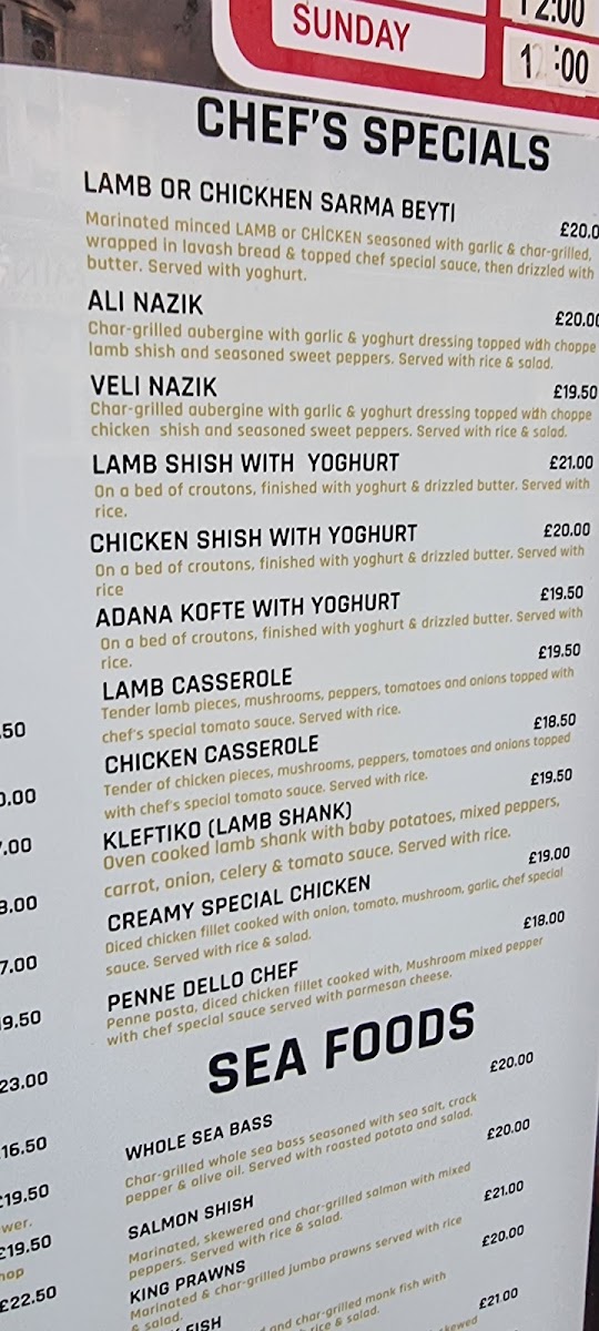 From the moment you step inside, the warm ambiance and attentive service reflect the restaurant’s genuine passion for Turkish hospitality. The menu is a delightful journey through Anatolian flavors, offering a wide selection of charcoal-grilled meats, fresh seafood, vibrant meze, and vegetarian options. Highlights include the mixed grill platter, which combines lamb shish, chicken kofte, and adana skewers cooked to tender perfection, and the grilled sea bass, which is both flaky and full of flavour. For starters, the cold and hot meze selection is generous-especially the hummus and spicy ezme, paired perfectly with freshly baked Turkish bread.